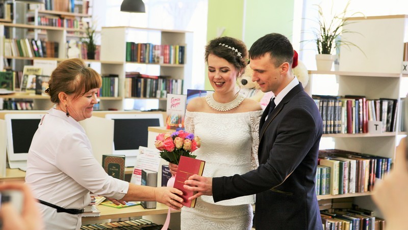 The staff of library of reading and rest of Gabdulla Tuqay announced the stock "Present the New Book to Library!" in Nizhnekamsk. The specialists of the Registry Office and newlyweds Renat and Alina Nigmetzyanovy have joined an action, having presented to library new children's art books.