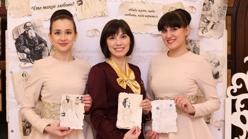 Specialists of the Registry Office urged newlyweds and guests of Wedding palace to read fragments of the famous works of L.N. Tolstoy. Guests with pleasure read prose, the famous fairy tales by the writer, have participated in a quiz on knowledge of the biography of the writer and were just photographed in the stylized photozone.