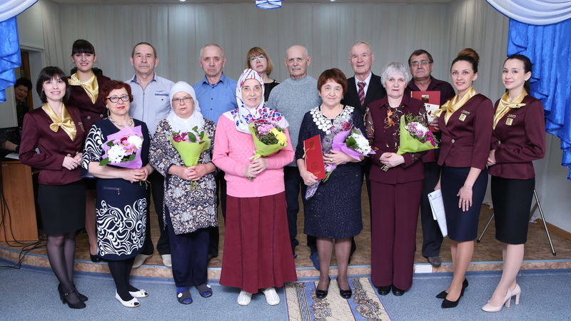 On March 16, 2018 within the traditional action «Spring week of good – relay of good deeds» specialists of the Registry Office of the Nizhnekamsk municipal district celebrated the heroes of the anniversary of matrimonial life having a rest in the Center of social service of the population «Mercy».
