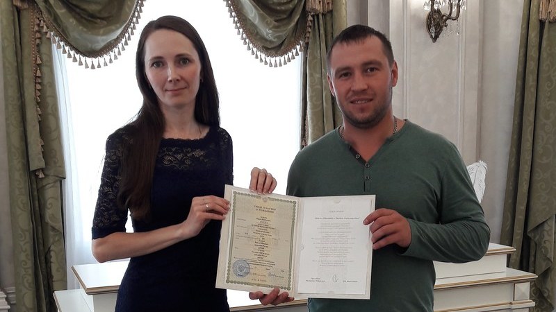 The girl Maria was born the first child of the beautiful parents of Maxim and Evgenia Atlas . Specialist of Department of the Registrar Troshina Elena E., congratulated the happy parents with a happy event, given the first and most important document in my daughter's life – the birth certificate and handed over a greeting card. We wish the baby good health and a happy bright future!