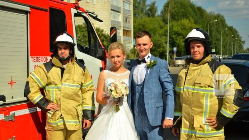 In Zelenodolsk for the wedding ceremony to the registry Office building the couple drove a fire truck. In such an unusual way decided to marry an employee of the 52nd fire and rescue unit Alexei Doronin.