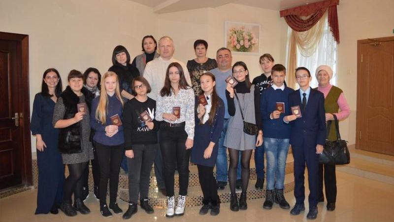 On the eve of the celebration of the Day of National Unity, a ceremonial presentation of passports of a citizen of the Russian Federation to schoolchildren over the age of 14 was held at the Civil Registry Office of the Executive Committee of the Zelenodolsk municipal district of the Republic of Tatarstan. Ceremony participants were 8 young Zelenodoltsev. The most important document in the life of the children was received from the hands of the head of the department of the Federal Migration Service of Russia for the Republic of Tatarstan in the Zelenodolsk district Groshev Igor Ivanovich, who noted the symbolism of handing over the passport of a citizen of the Russian Federation on the eve of the celebration of National Unity Day. The solemn ceremony of presenting passports ended with a memorable photograph.