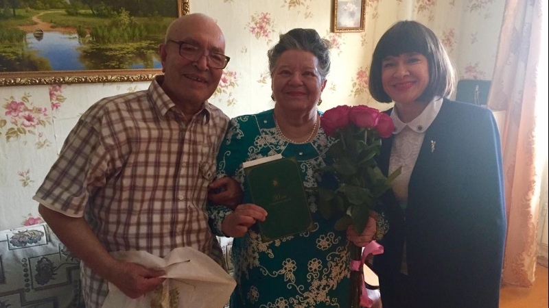 Тhis motto as well as possible approaches the spouses who together lived in the marriage Union more than 50 years and celebrated the “Gold ”weddings. As part of the decade of people with disabilities on December 6, 2018 Honored worker of culture of the Republic of Tatarstan Guzel Мukhutdinova on behalf of the registry office of Kazan went to the house to three married couples . Anniversaries were given gifts, as well as flowers and a congratulatory address on behalf of the Mayor of Kazan Ilsur Metshin.