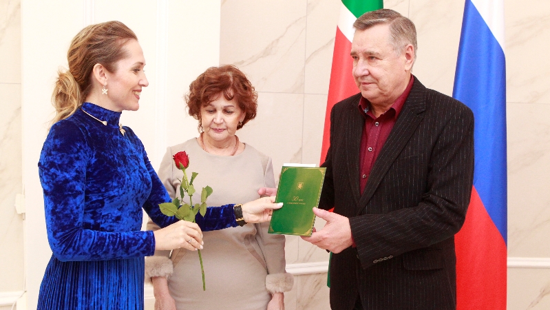 The ceremony of honoring 15 "diamond" and "gold" couples was held in a festive atmosphere. The host of the event congratulated the spouses, told about the history of each family. On behalf of the mayor of Kazan anniversaries handed a congratulatory address and a cash gift.