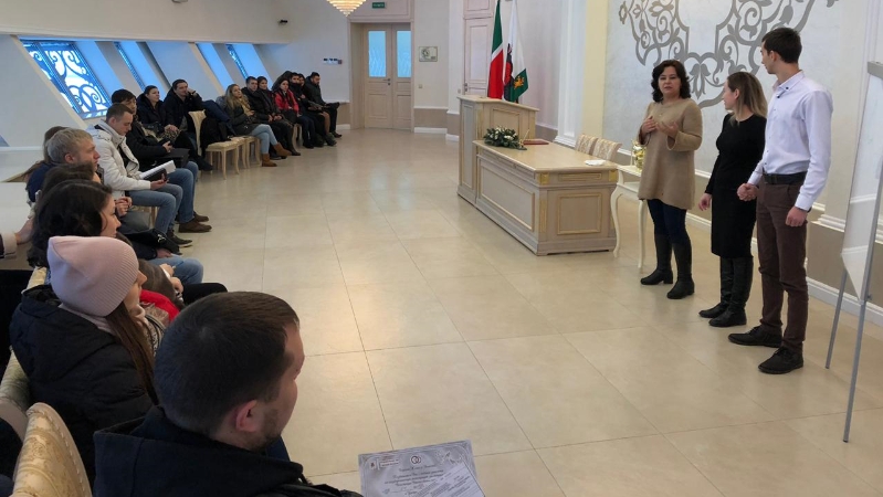 "School of young family" opened the work on the topic:"Learning to give in and understand your partner." More than 19 couples of future spouses with great interest took part in the conversation, solved psychological problems. Guzel Zakirova in her speech emphasized the importance of the role of the family: “Family is always everyday life, which with the help of regular compromises, enormous mutual respect and gratitude to each other, can become holidays.” In front of the newlyweds was made by the chief specialist of Department of registration of acts of civil status Guzel muhutdinova. She spoke about the procedure of the ceremony, the rules of conduct during the state registration of marriage. Drew the attention of the newlyweds to the cleanliness and order in the family Center "Kazan" after the celebration. Everyone is welcome at the regular classes of the "school of young family" on Tuesdays at 10 o'clock.