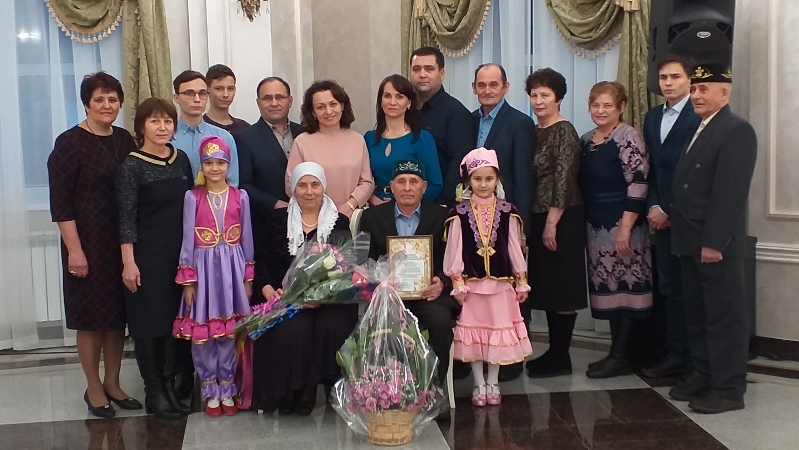 50 years from the date of the wedding is a solid and truly round date for each family. And it is very important to mark her among the closest people, along with friends, children and grandchildren. On January 19, 2019, the specialist of the civilian registry office, Troshikhina Elena Evgenievna, in a solemn atmosphere honored the “golden” anniversaries Murtazinykh Elfat Sabirzyanovich and Golsina Anasovna. The golden wedding is the result of the joint work of two close people over the long 50 years. Our anniversaries lived together in love and harmony for half a century. They are a worthy example for the younger generation. Many warm words and wishes were said to the heroes of the occasion. In memory of a significant event in the life of the Murtazins' spouses, their names were entered into the Honorable Book of the jubilees of the married life of the Leninogorsk District of the Republic of Tatarstan.