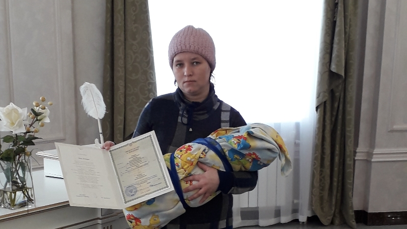 "24" January 2019 specialists Leninogorsk registry office congratulated a large mother Nizamova Lily Ilyasovna with the birth of the fourth child. The girl was given a beautiful name Rushaniya, which means " radiating light." Happy mother was congratulated on a joyful event, issued the first and most important document in the life of her daughter – a birth certificate, and handed a greeting card. We wish the baby good health and a happy bright future!