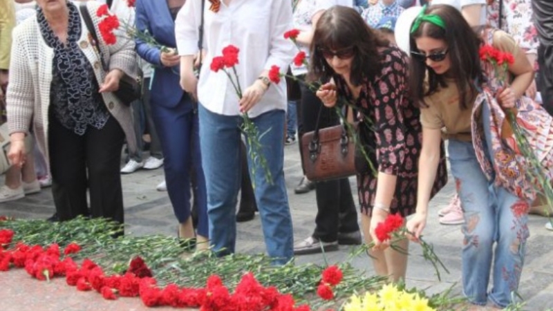 By tradition, employees of the largest enterprises and organizations of the city passed the column from the city center to the memorial "Eternal flame", near which laid flowers in memory of the soldiers who died during the war.