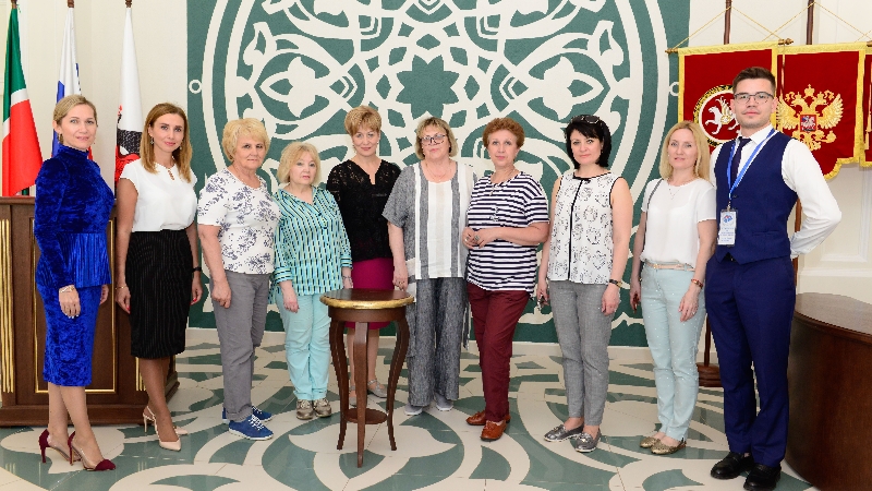 Within the framework of the Coordinating Council of Commissioners for Human Rights, the Commissioners for Human Rights in Amur, Vladimir, Ivanovo, Novosibirsk and Tver regions and the Komi Republic arrived in Kazan, during which on May 14, 2019 the delegation visited one of the attractions of the capital, the Family Center "Kazan". During the tour, members of the delegation visited the registration halls, learned about the history of the complex, climbed the viewing platform of the Bowl, which was loved by the residents and guests of the capital, offering a beautiful view of the architectural and historical ensemble of the Kazan Kremlin and the water area of Kazanka.