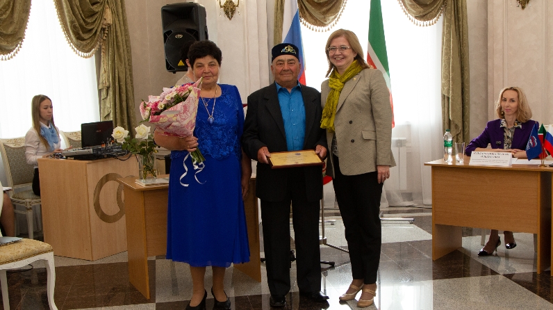 The event was attended by: Head of the Civil Registry Office of the Cabinet of Ministers of the Republic of Tatarstan Nigmatullina Gulshat Radifovna; the head of the Leninogorsk municipal district, the mayor of the city of Leninogorsk Khusainov Ryagat Galiagzamovich; Head of the civil registry office of the executive committee of the municipality "Leninogorsk municipal district" of the Republic of Tatarstan Minnigalyamova Elena Yakovlevna, who, in their welcoming speech, congratulated the Yunusovs spouses with such a significant event, wished good health and family well-being for many years and handed letters of thanks, gifts and jubilee marriage registration certificate.