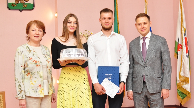 Every year on the Day of Family, Love and Loyalty in the civil registry offices of the city according to the tradition of a full house. The first guests were the future newlyweds Alexander and Anastasia, who decided to create a young family and submit an application to the registry office. Engagement ceremony was a surprise for the future newlyweds. According to an ancient legend, couples who have committed engagements and marriages on this day will be happy, as they will be under the auspices of Orthodox saints - Prince Peter and his devoted wife Fevronia of Murom. And now - it happened, Alexander and Anastasia signed a joint statement and received an invitation to register a marriage on the appointed day, now they are the bride and groom and you can get ready for the wedding! Niyaz Mansurovich Gafiyatullin, Deputy of the Kazan City Duma, Director of the International School and Vera Vasilyevna Potapova, Head of the Privolzhsky Department of the Civil Registry Office congratulated the newlyweds. They wished them to experience the most romantic and tender feelings, to enjoy every moment, realizing the importance of the event! In memory of the engagement, the future newlyweds were presented with a book “Springs of the Land of Tatarstan” and a cake.