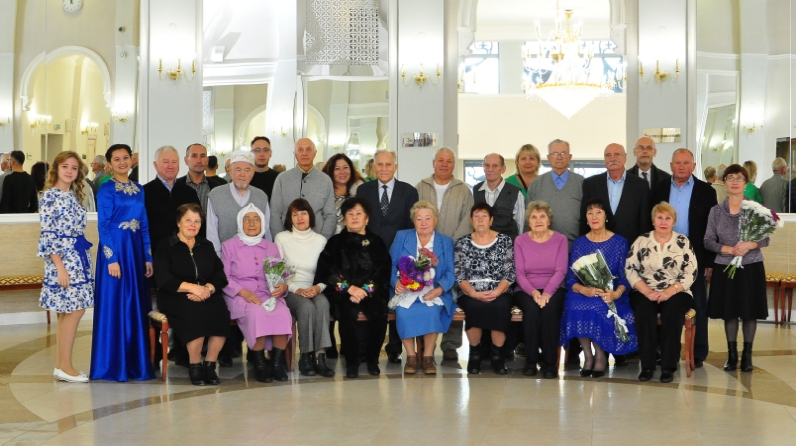 The ceremony honoring 10 couples was held in a festive atmosphere. On behalf of the Mayor of Kazan I. Metshin, the anniversaries were given a congratulatory address and a cash gift.