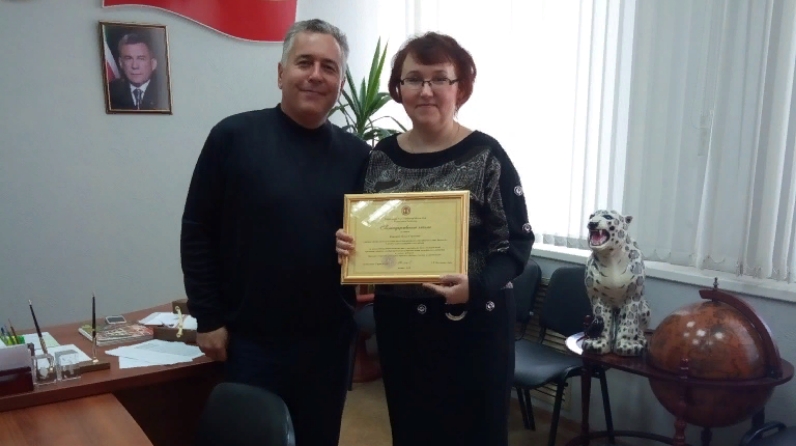 The head of the urban settlement Vasilevo Zelenodolsk municipal district Eldar Khaliullin handed chief specialist of the Executive Committee of the village Olga Rusina letter of Thanks of the registry office of the Cabinet of Ministers of the Republic of Tatarstan for many years and hard work in the field of state civil registration and in connection with the 50th anniversary!