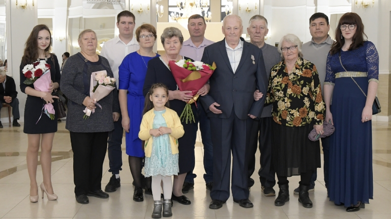 On behalf of the Mayor of Kazan Ilsur Metshin, the jubilees were handed a congratulatory address. They signed the Book of Honor of the registry office of Kazan. Lilia Hamidullina sang songs for them. The couple danced a life-long waltz. All of them have created strong families, but the most important wealth that the anniversaries have is their children, grandchildren and great-grandchildren. Family and friends joined in the congratulations and took pictures.