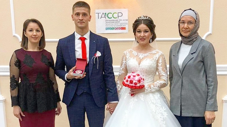 On January 3, 2020, the registry office of the Executive Committee of the Muslyumovsky municipal district solemnly registered the marriage of the first couple of the Muslyumovsky municipal district, Ramil and Guzel Shafigullin. Deputy head of the Executive Committee of the district on social issues badretdinova Marina Ranasovna congratulated the newlyweds, presented valuable gifts and awarded the badge of honor «100 years since the formation of the TASSR».