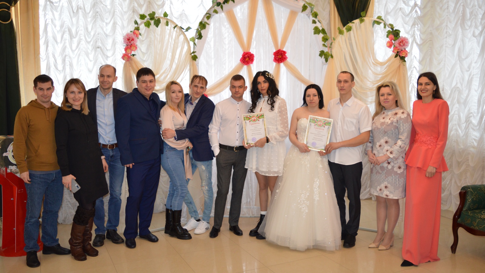 During the festive event, the guests present helped the newlyweds and supported them with stormy applause.