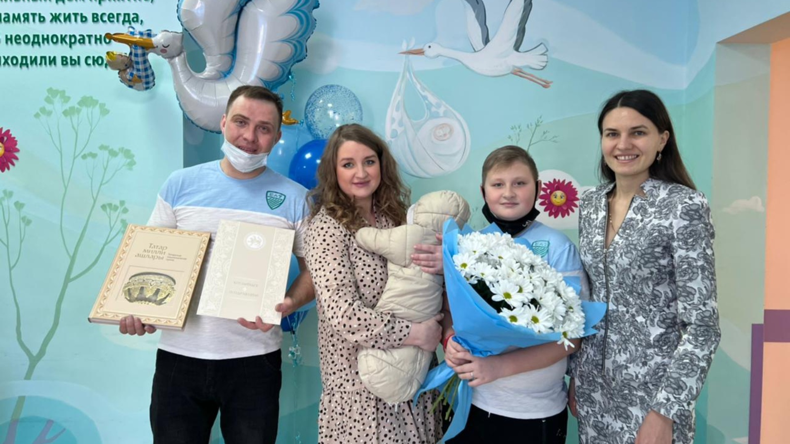 The birth of a child is always a joy and a great happiness. In Zelenodolsk, a solemn discharge of a newborn child – Arseniy Artemovich Mukhametzhanov, born in the family of Artem Irikovich and Elena Nikolaevna, took place. A representative of the Registry Office of the Executive Committee of the Zelenodolsk Municipal District congratulated the family on a wonderful event, handing the parents the first document of their long–awaited child - a birth certificate.