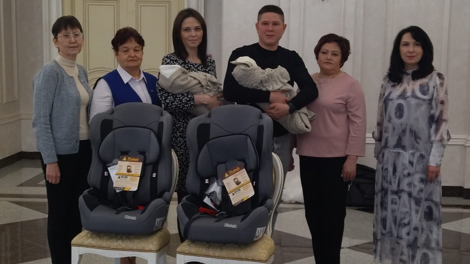 The solemn event was attended by the head of the prevention department of the state budgetary institution «Road Safety» in the Leninogorsk district of the territorial administration of the city of Almetyevsk-Rakhmanova Zulfiya Mudarisovna. Zulfiya Mudarisovna wished the happy parents good health, happiness, patience in raising children and presented car seats.