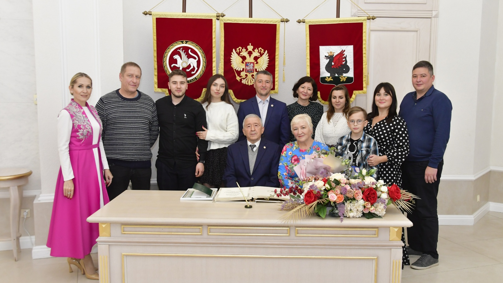 The anniversaries were happy to remember their first meeting, the solemn event of the wedding. At the ceremony, on behalf of the Mayor of Kazan Ilsur Metshin, the anniversaries were presented with a congratulatory address, a monetary gift and a certificate of the celebration of the golden jubilee from the Registry Office of Kazan. In a solemn atmosphere, the couple put their signatures in the Book of Honor of the Kazan Family Center.