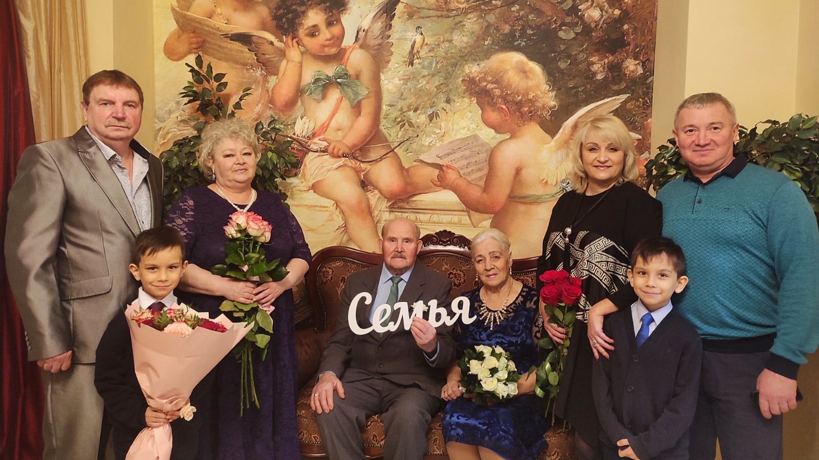 Employees of the Registry Office department handed over to the anniversaries a letter of Thanks from the Head of the Zelenodolsk Municipal District of the Republic of Tatarstan. The whole family gathered to congratulate the spouses on the anniversary – children, grandchildren and great-grandchildren. Many warm heartfelt congratulations were addressed to the anniversaries.