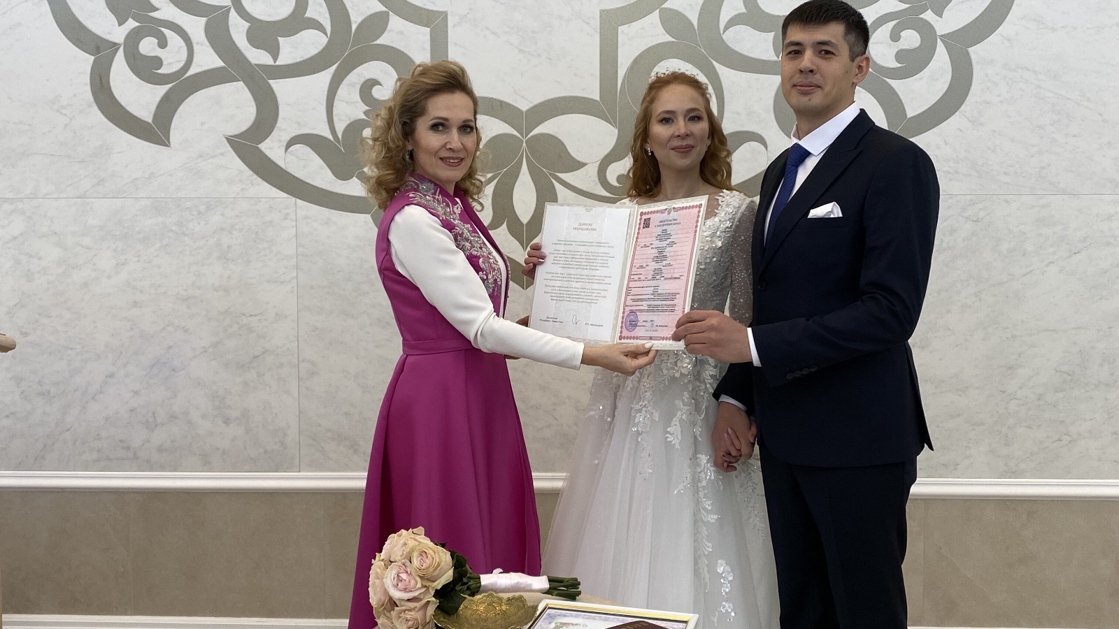 The newlyweds Marat and Adelia Belyaev became the first couple of the Kazan Registry Office in 2023. Young people met on social networks. A year later, they realized that they could not live without each other. Marat proposed to his chosen one and gave her a ring. Adelia agreed. The newlyweds decided to legalize the relationship during the New Year holidays, so that all relatives could come to the wedding celebration.