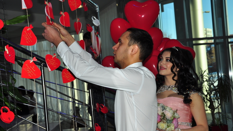 День святого Валентина – это праздник любви, романтики, цветов, шоколадных конфет в виде сердца и пылких признаний на открытках. И пусть в нашу страну этот праздник пришел совсем недавно, влюбленные пары с удовольствием и восторгом отмечают его ежегодно. Во Дворце торжеств города Набережные Челны создана особая праздничная атмосфера. И хотя в этом году праздник выпал на среду, 30 пар решили начать летопись своей семьи в этот день. Молодоженам был подготовлен сюрприз: все они писали пожелания на «сердечках любви», которые затем наши «золотые» юбиляры Кукужевы на красных шариках любви, запустили в небо. Эти пожелания обязательно сбудутся - ведь они были в руках тех, кто 50 лет трепетно бережет, хранит свою любовь!