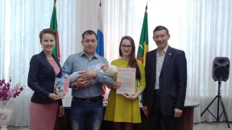 Собравшихся родителей с прибавлением в семействе начальник отдела ЗАГС Айгуль Ахметшина и преподнесла в подарок незаменимое справочное пособие «Семейные страницы». Пожелала семейного счастья и благополучия гостям и виновникам торжества.