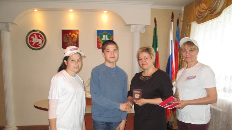 25 мая в отделе ЗАГС исполнительного комитета Кукморского муниципального района прошло торжественное мероприятие – вручение первых паспортов гражданина России. Четырнадцать юных кукморян получили свой главный документ из рук руководителя отдела ЗАГС Латыповой Зульфии Тагировны. С важным событием в жизни юных граждан России поздравили также старший инспектор отделения по вопросам миграции ОМВД России по Кукморскому району Асия Фатхуллина, руководитель Кукморского местного отделения партии «Единая Россия» Яппарова Камиля Мингазетдиновна. Разделить радость момента пришли и родители юных граждан. Виновникам торжества были высказаны слова напутствия. Ребята, в свою очередь, пообещали достойно нести звание гражданина РФ.