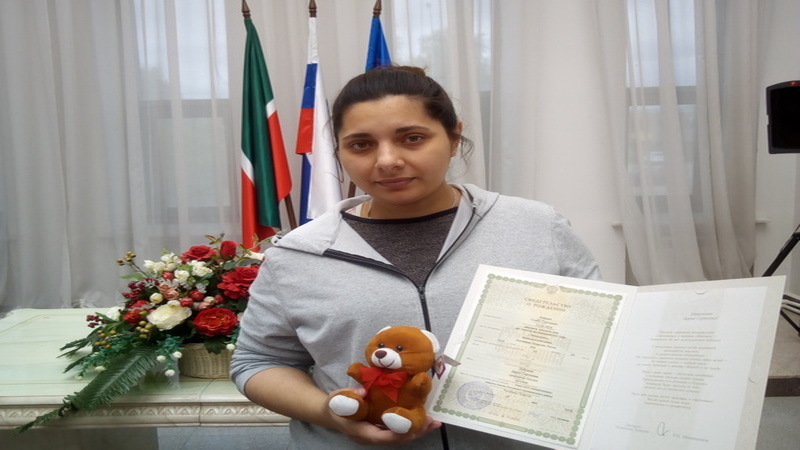 В соответствии с Семейным кодексом Российской торжественную регистрацию рождения Семёна провела начальник отдела ЗАГС Камско-Устьинского района Елена Халикова. Мама проставила свою подпись в записи акта о рождении ребёнка, и Елена Тудимировна вручила первый документ малыша – свидетельство о рождении, поздравительный адрес от имени Президента РТ Р.Н. Минниханова и мягкую игрушку от супругов Алексея и Алии Рыбаковых, зарегистрировавших брак 27.04.2018 года.