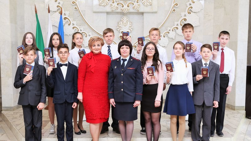 Начальник Управления ЗАГС Бэлла Ивановна Махотина поприветствовала учащихся и поздравила со знаменательным событием в их жизни. Начальник отдела по вопросам миграции Управления МВД России по Нижнекамскому району, майор полиции Багаутдинова Галина Викторовна вручила ребятам паспорта, пожелала бережно хранить их, хорошо учиться и чтить Конституцию РФ. В свою очередь юноши и девушки пообещали соблюдать и уважать действующие законы, с почтением относиться к национальным ценностям и культурному наследию своих предков.
