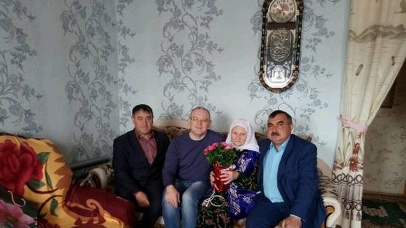 Поздравить Альфинур Гатиятовну приехали начальник отдела социальной защиты района Марсель Хузин, Глава Большешинарского СП А.Г. Гарипов, директор ООО «Туган Як» И.Ш. Мухаметов. Юбиляр с радостью принял праздничное послание Президента РФ Владимира Путина, а также персональный подарок от имени Главы Сабинского муниципального района Р.Н. Минниханова. Желали ветерану крепкого здоровья, долголетия, счастья, отличного настроения и заботы окружающих.