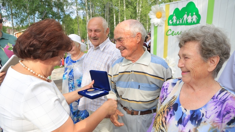 В рамках праздника состоялось вручение Высоких общественных наград – медалей «За любовь и верность». В этом году медалистами стали шесть семейных пар – победителей муниципального конкурса «Семья – гордость Нижнекамска». Это супруги Несмеянкины, Файзуллины, Новиковы, Чутаевы, Борисовы и Ефимовы.