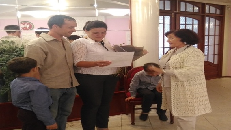 Красивая и счастливая семья Ахметовых пришли в отдел ЗАГС со словами благодарности. 10 лет назад родилась их семья. Тимур и Светлана зарегистрировали брак 08.08.2008г. Сотрудники отдела ЗАГС тоже сделали сюрприз супругам. За 10 минут подготовили зал торжеств, импровизированное поздравление, Почетное свидетельство розовых юбиляров. Поздравление прошло в очень теплой и искренней обстановке.