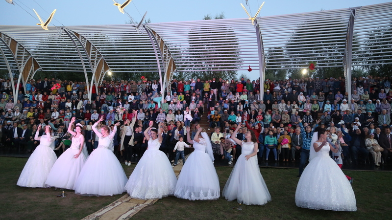 В качества ответа и подарка ко дню города, молодожены подготовили флеш-моб, который вызвал бурю оваций и положительных откликов от зрителей.
