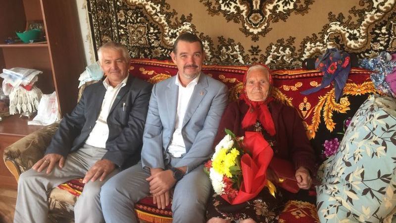 Поздравить ее с этой знаменательной датой приехали Глава муниципального района Павел Лоханов и глава сельского поселения Ахат Сагдеев. Ей вручили памятный подарок от администрации Камско-Устьинского муниципального района и цветы.