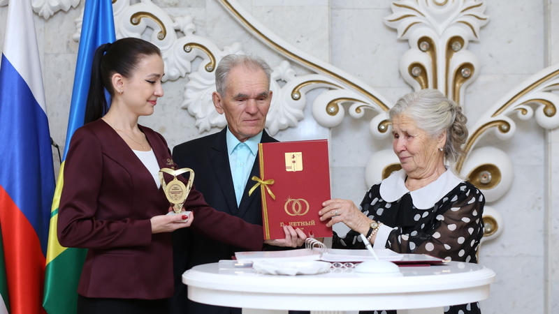 Специалисты Управления ЗАГС поздравили супругов с юбилеем, пожелали крепкого здоровья, долголетия, вручили Почетный акт и юбилейную медаль. Поздравили Кочетовых председатель Совета ветеранов ПАО «Нижнекамскшина» Хисамиева Рамзия Галиевна и ветеран ПАО «Нижнекамскшина» Пирвякова Татьяна Михайловна; также родные и близкие.