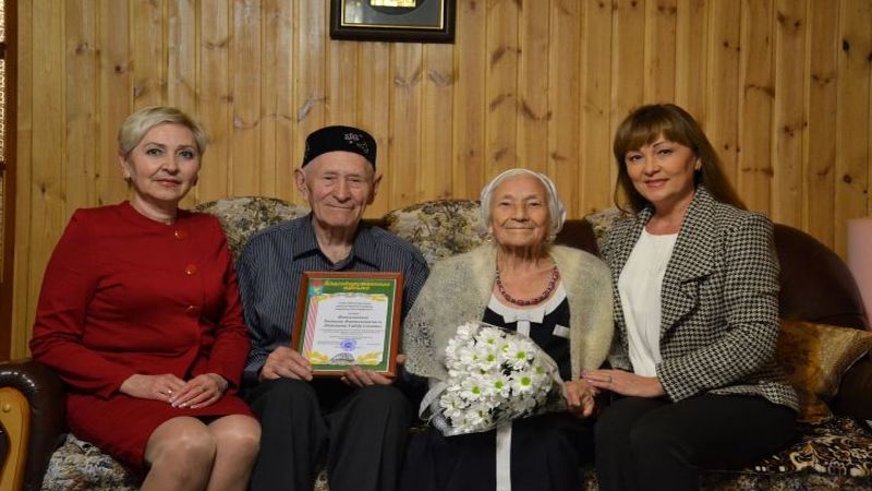 Поздравить молодожёнов с бриллиантовой свадьбой в этот день пришли начальник отдела ЗАГС Анна Куприянова и заместитель руководителя исполкома района по социальным вопросам Нэля Бикеева.