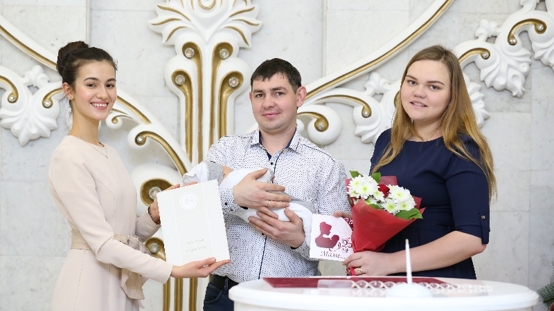 Специалисты Управления ЗАГС поздравили родителей с рождением сына, пожелали счастья, семейного уюта и благополучия, вручили свидетельство о рождении и поздравительное обращение от местной общественной организации «Женщины Нижнекамска».