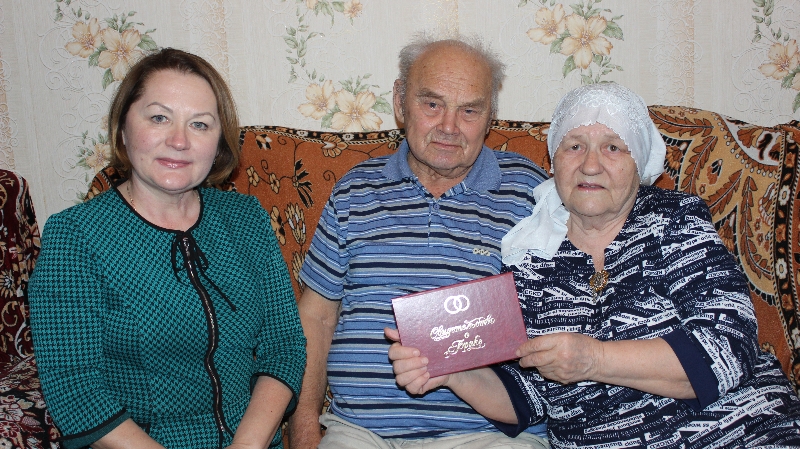 Начальник отдела ЗАГС Бавлинского района С.Т.Мурсалимова поздравила семью Хабатуллиных с «бриллиантовой свадьбой» и вручила им памятное свидетельство и подарок.