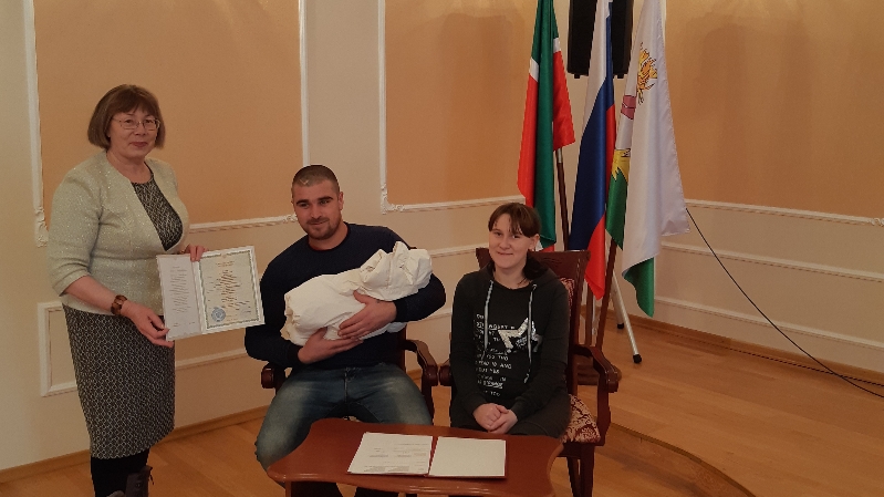 В отделе ЗАГС исполнительного комитета Алексеевского муниципального района состоялась торжественная регистрация первого младенца в 2019 году, молодых родителей поздравила начальник отдела ЗАГС Суниева Э.З., им были вручены памятные подарки.