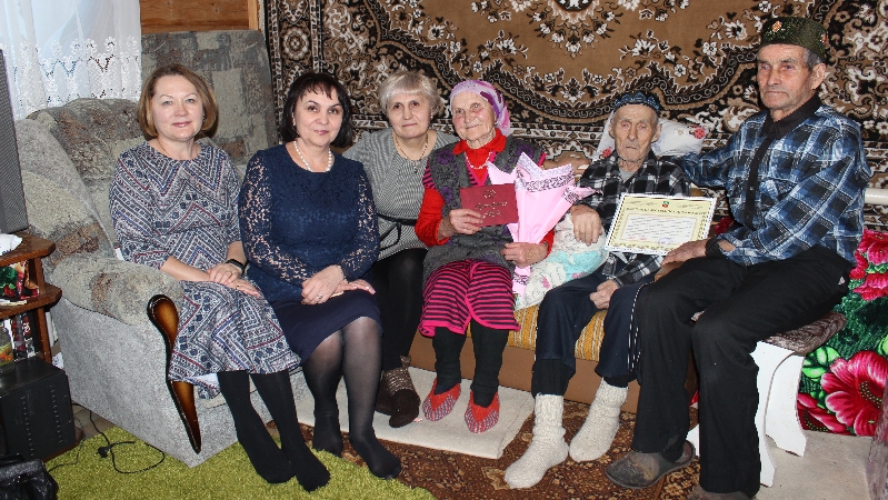 С Бриллиантовой свадьбой юбиляров поздравили заместитель руководителя исполкома И.И.Хуснуллина, начальник отдела ЗАГС С.Т.Мурсалимова.