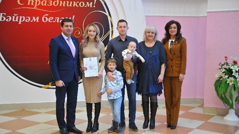 В торжественной обстановке сертификаты на материнский (семейный) капитал вручили начальник МКУ Управление ЗАГС Равиля Гильметдиновна Зарипова и начальник Управления Пенсионного фонда РФ в г. Набережные Челны Эдуард Рафаилович Фаттахов. Родители пришли с главными виновниками торжества - новорожденными малышами. Молодым родителям было сказано много теплых слов с пожеланиями любви и семейного благополучия.
