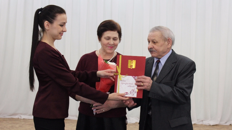 Сегодня сотрудники ЗАГС чествовали 8 пар, каждой из которых вручили Поздравительные обращения от общественной организации «Женщины Нижнекамска», Почетные акты Управления ЗАГС и букеты цветов. По сложившейся традиции имена юбиляров были внесены в Книгу Почета Управления ЗАГС г. Нижнекамска.