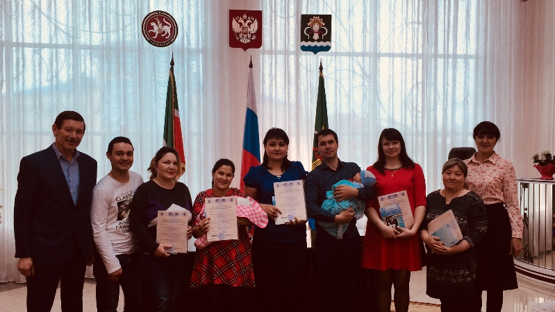 Главный специалист отдела ЗАГС Фания Гаязова поздравила 6 счастливых семей нашего любимого города с прибавлением в семействе. Преподнесла в подарок незаменимое справочное пособие «Семейные страницы» и рассказала о том, что в районе созданы все условия для полноценного воспитания и развития детей.