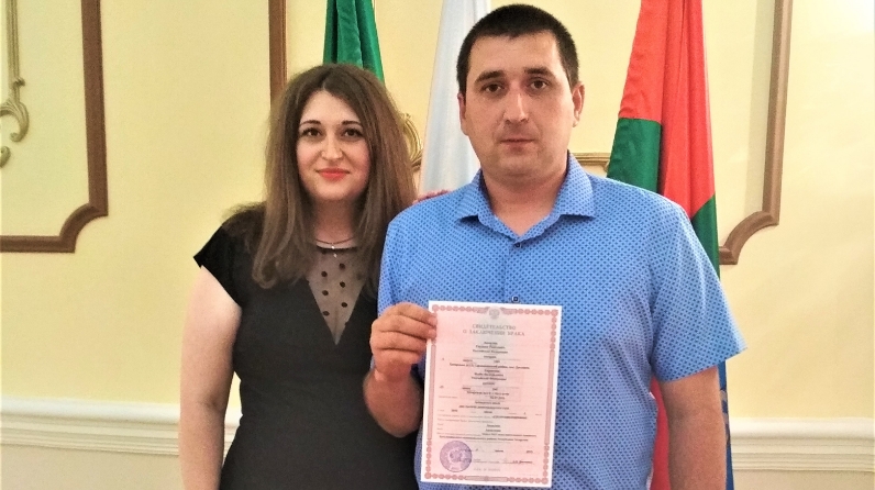Раушан и Майя Авзаловы стали юбилейной парой, регистрирующей свой брак в отделе ЗАГС. Для молодоженов стало приятным сюрпризом получить свидетельство о заключении брака с юбилейным номером.