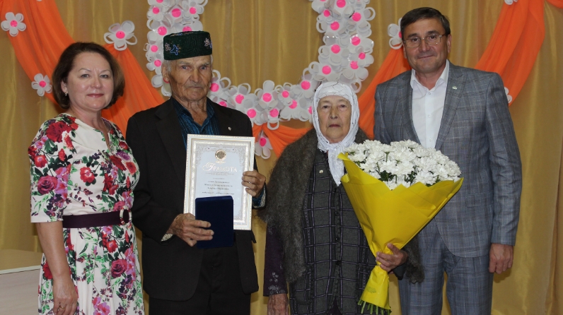 Заместитель Главы района Р.Г.Хамидуллин, начальник отдела ЗАГС С.Т.Мурсалимова тепло поздравили виновников торжества и вручили медаль «За любовь и верность».