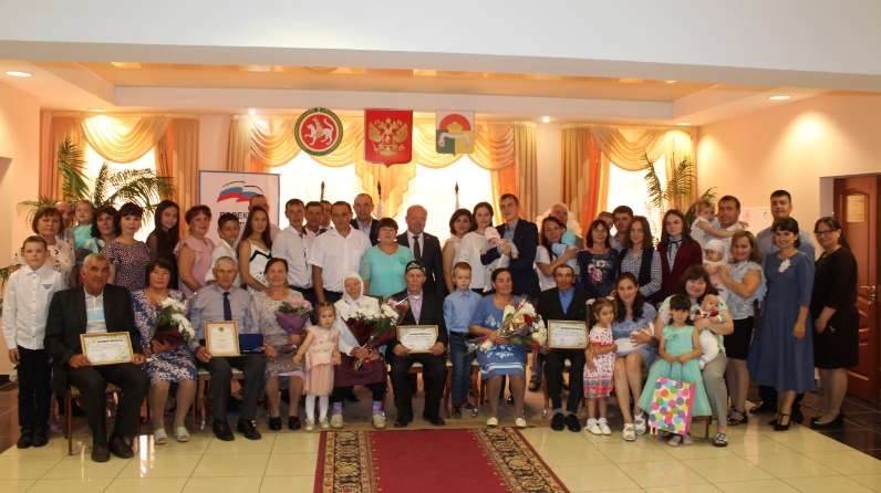 Также на мероприятие были приглашены семьи, празднующие юбилей семейной жизни в День семьи, любви и верности. Шарафутдиновы Ирфан Ахатович и Альфия Азмалетдиновна из села Шланга празднуют 55-летний юбилей совместной жизни, семья Николаевых Анатолий Иванович и Зинаида Васильевна из села Новый Убей празднуют 45 лет совместной жизни, семья Халиловых Наиль Мансурович и Фирюзя Абдулкабировна празнуют 35 летний юбилей. Супружеским парам вручены сертификаты долголетия, цветы и памятные подарки. В адрес юбиляров семейной жизни прозвучали слова признательности, пожелания счастья, добра, жизненного благополучия и от глав сельских поселений: Алексея Ярухина, Рамиса Низамутдинова, Альберта Мухарямова и Роберта Дружкова.