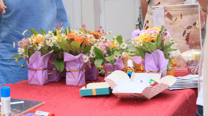 Жители и гости города приняли участие в различных мастер-классах по флористике, изготовлению браслетов и ромашек, росписи футболок и печенья, плетение кос с цветным нитями, аква-грим.