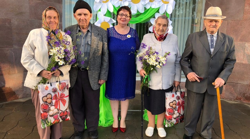 В рамках праздника начальник отдела ЗАГС п.г.т. Камские Поляны Альфия Хаппанова поздравила c супружеским юбилеем три семейные пары: брилилантовых юбиляров Хаппановых и Князевых, коралловых юбиляров Шестерневых. Супругам вручили Благодарственные письма и памятные подарки.