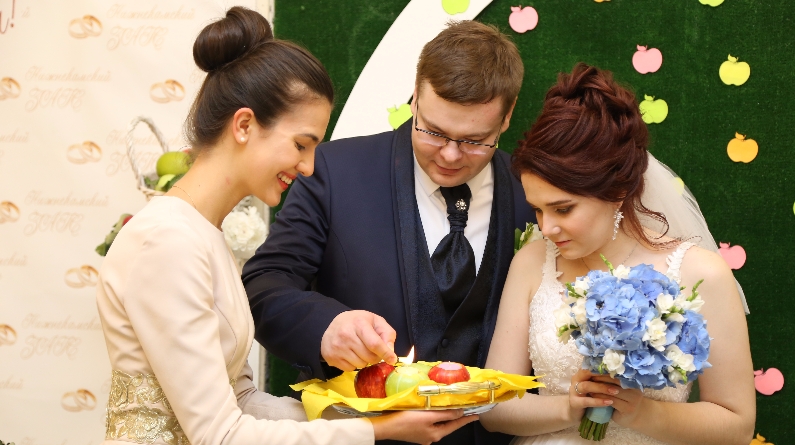 Молодожены с энтузиазмом отнеслись к поставленной задаче и обещали сохранить свечу до исполнения желания. Также женихи и невесты фотографировались в тематическом уголке и делали креативное «селфи».
